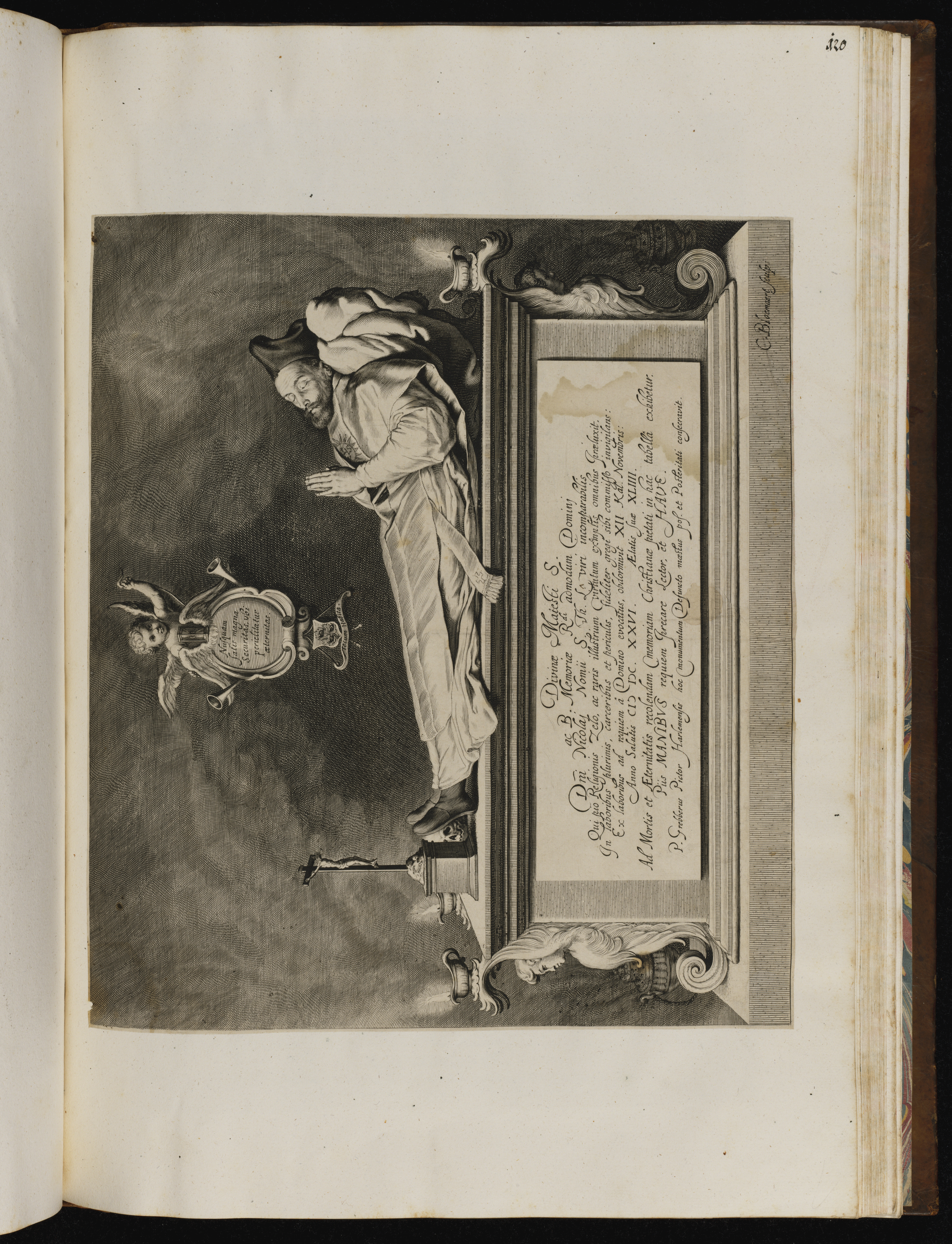 | Hist. Inhaltsverzeichnis: | 120. | Grabmahl des Nic. Nomii S. Theol. L. Oben ein Engel mit einem Schilde: Nusquam satis / magna securitas p. unten: Divinae Majestati S. ac B. memoriae etc. | P. Grebberus pinx. C. Bloemaert / sc. |